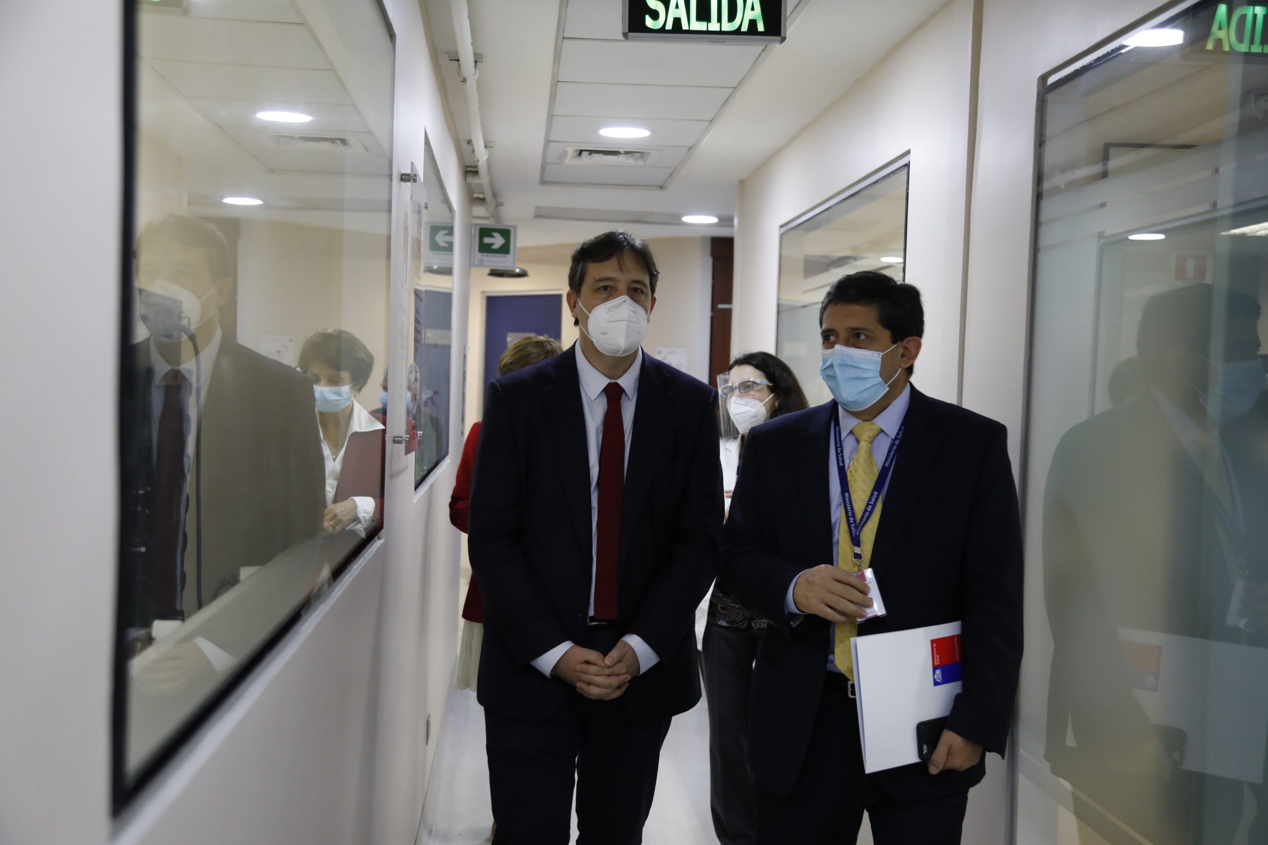 El vicerrector de Investigación UC, Pedro Bouchon entregando el primer informe de los resultados del estudio en Fase 3 de la vacuna Sinovac al ministro de Salud, Enrique Paris. Foto: César Cortes.