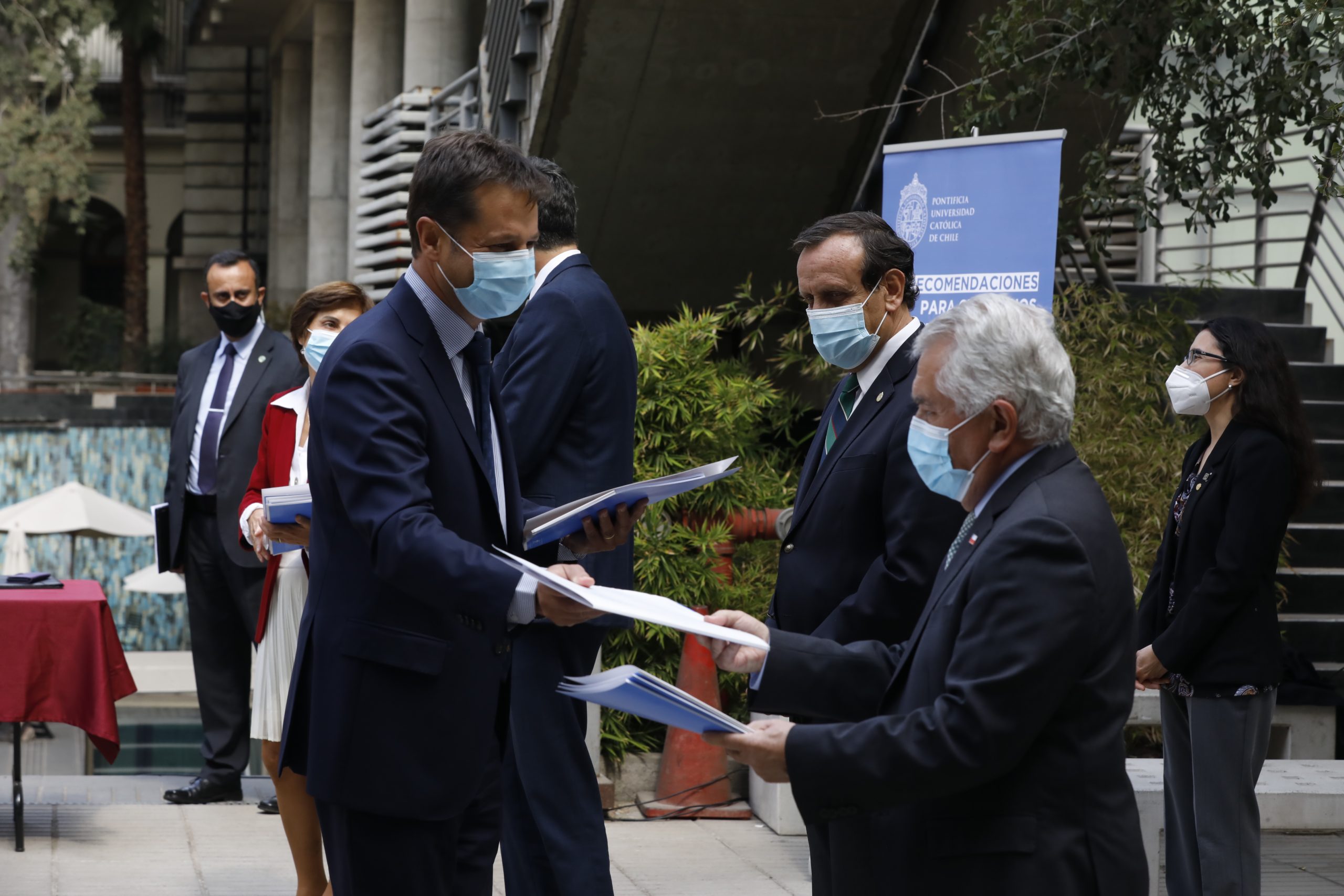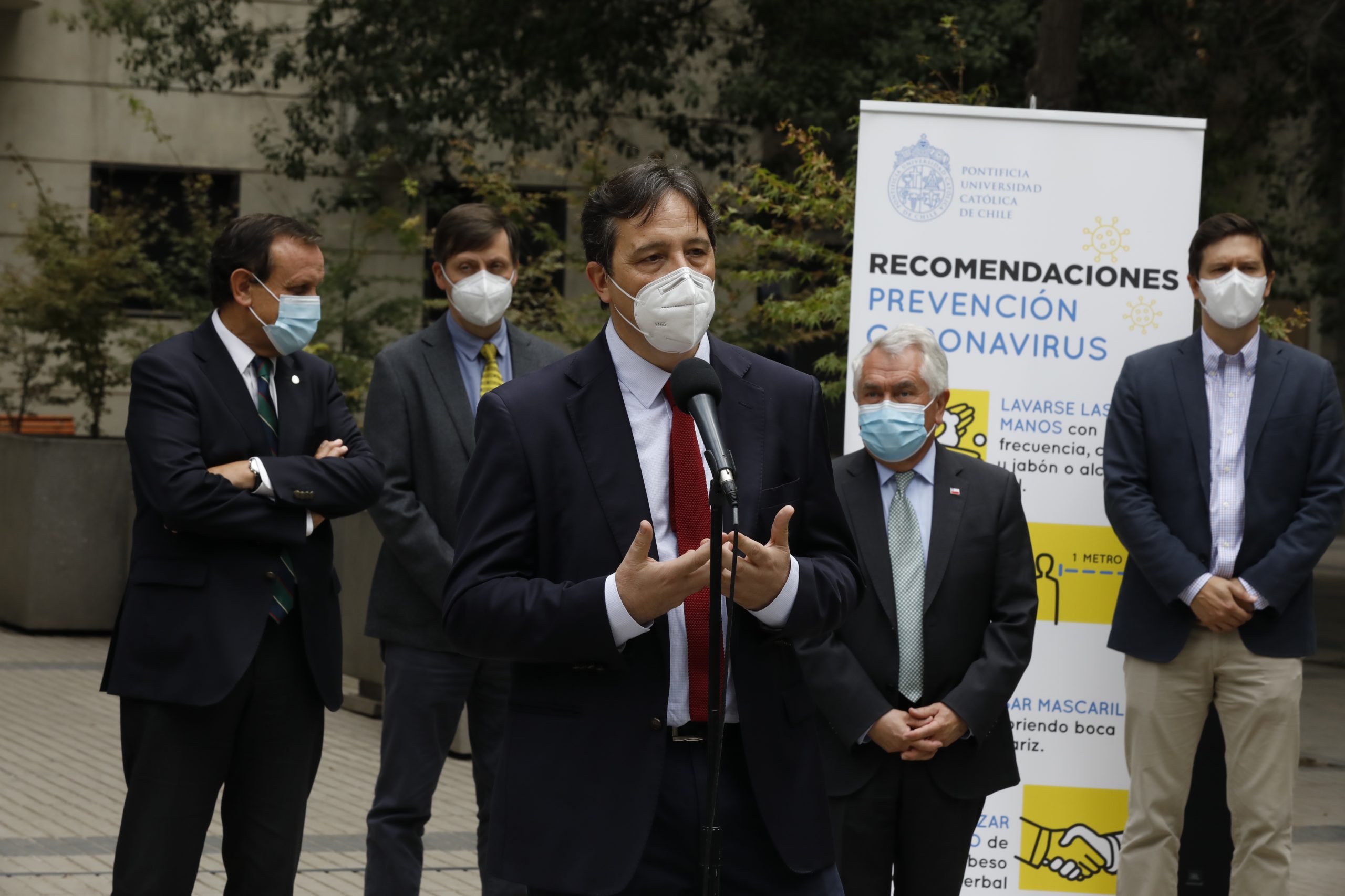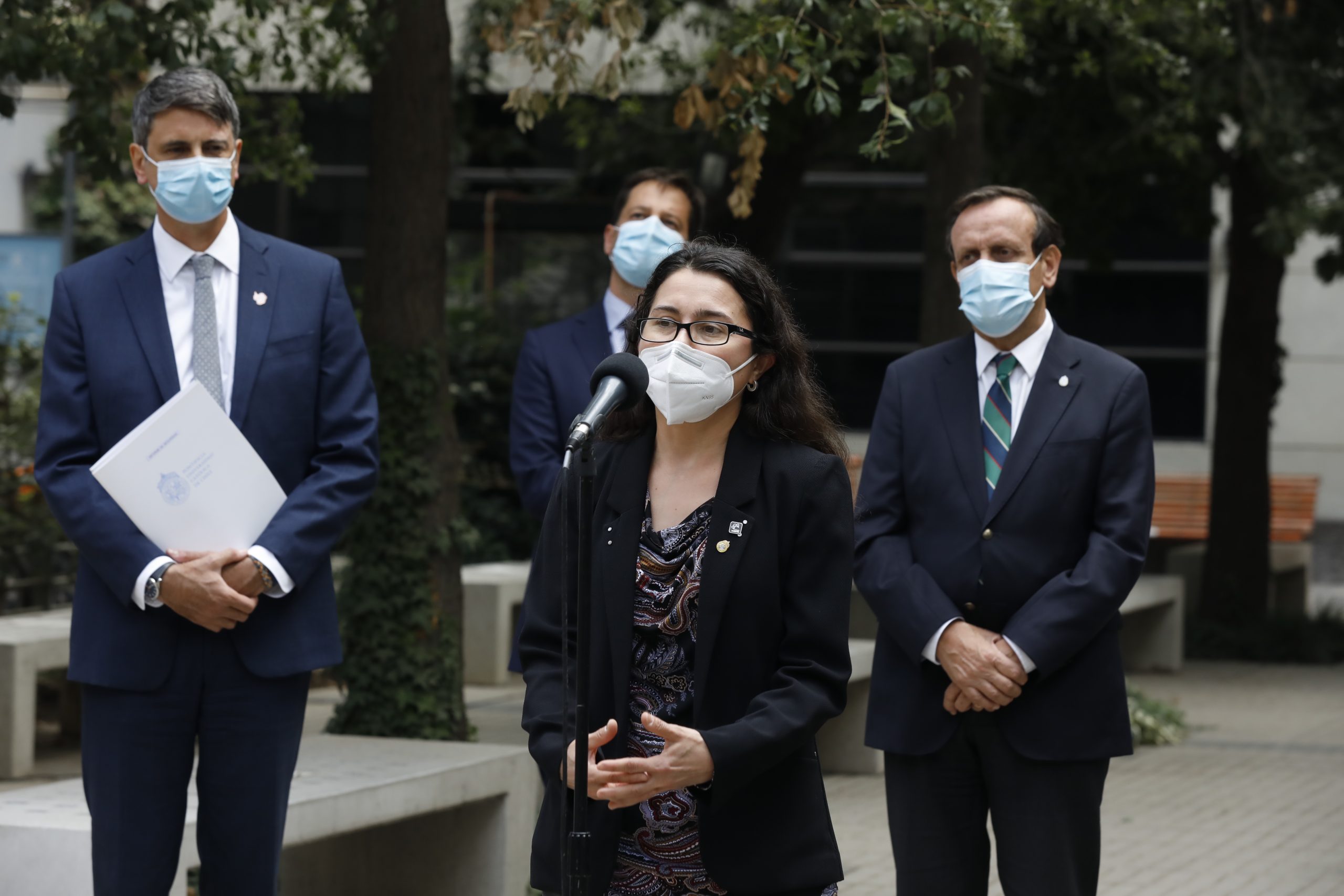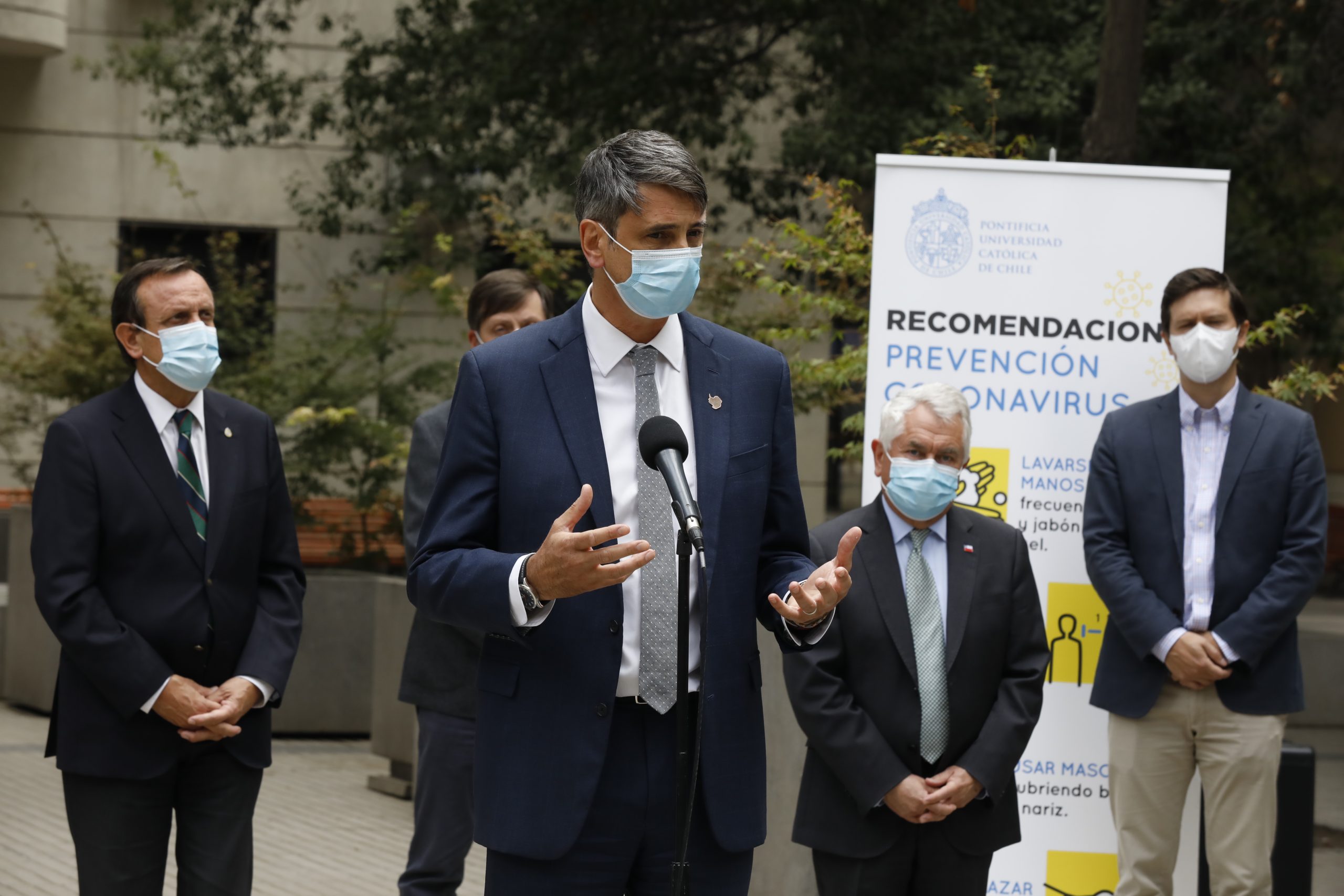 “La forma en que la comunidad científica valida los estudios es a través de la revisión entre pares y el envío a revistas especializadas de la disciplina”, señaló el vicerrector de Investigación UC, Pedro Bouchon antes de entregar el primer informe de resultados del estudio en Fase 3 de la vacuna Sinovac al ministro de Salud, Enrique Paris.